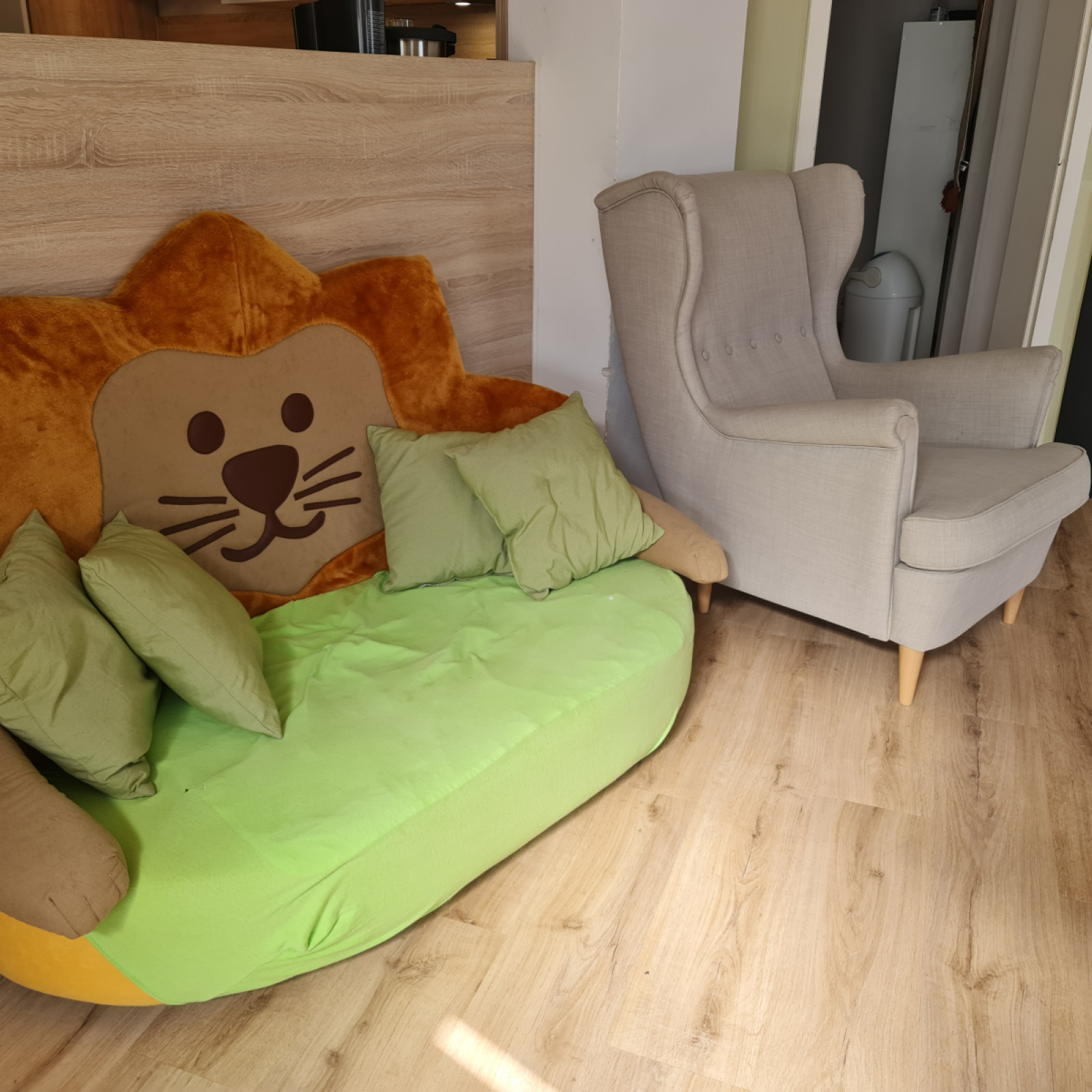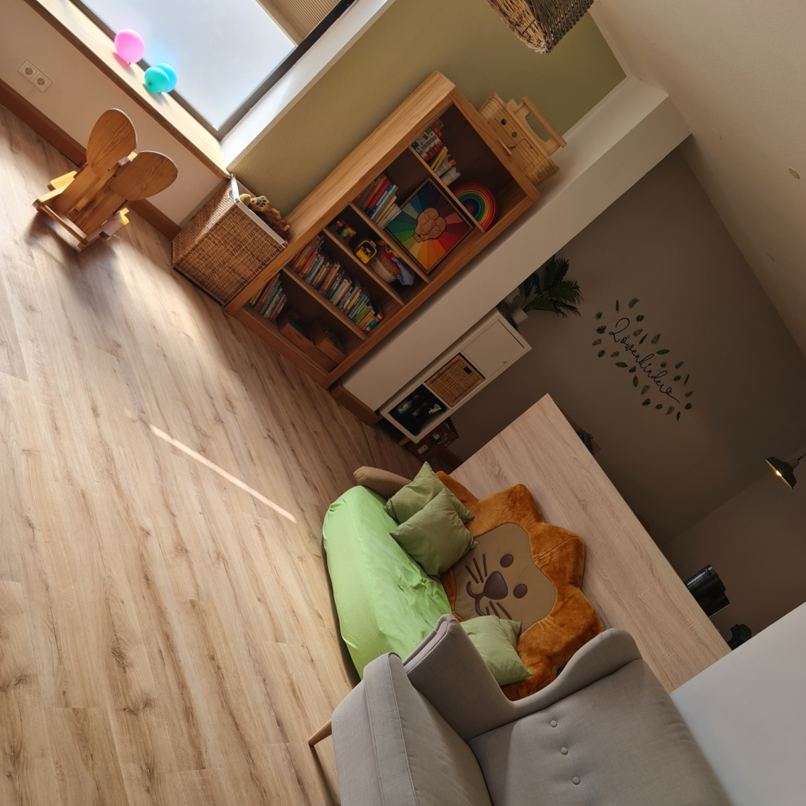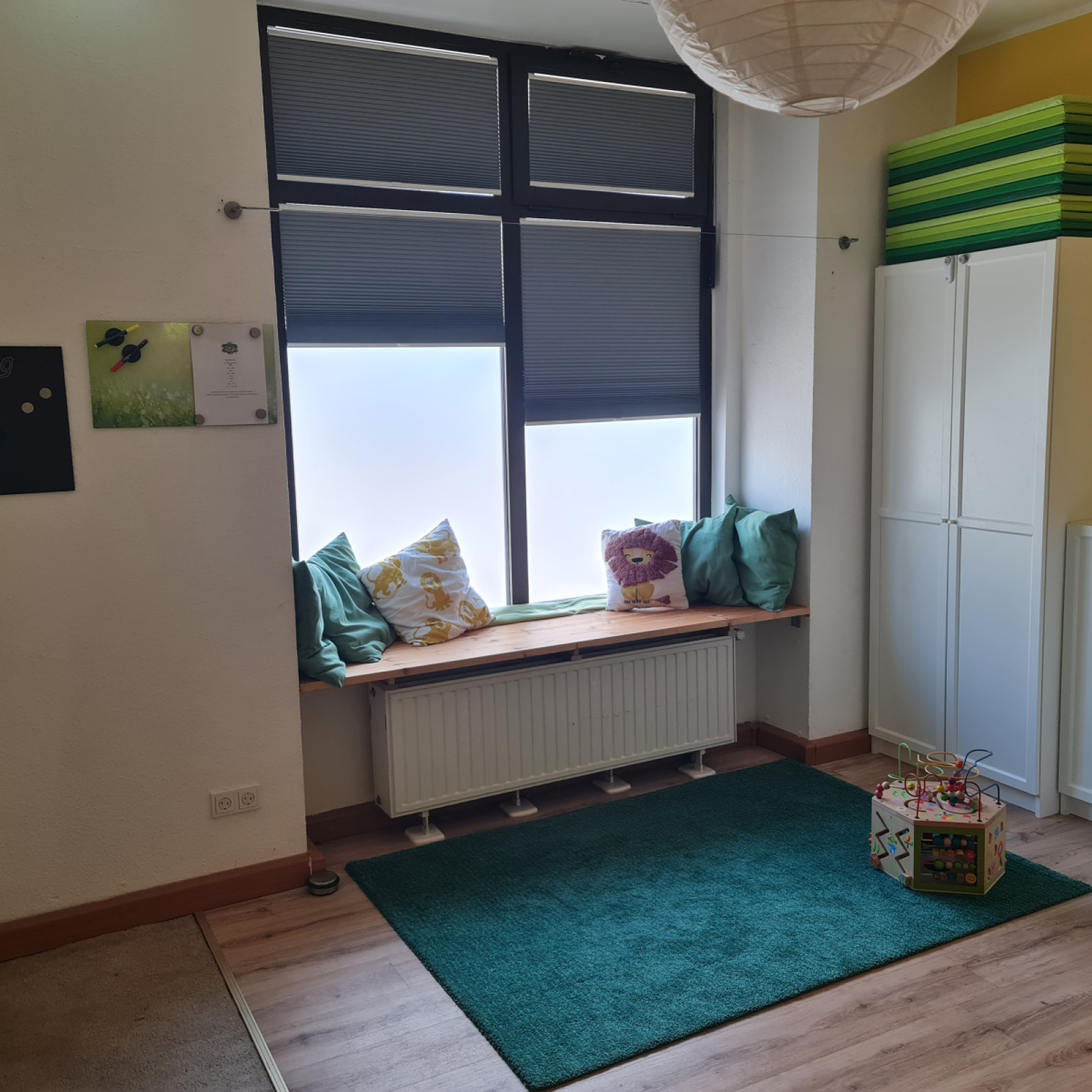Der Spiel- und Bewegungsraum grenzt an dem Wickelraum und der offenen Küche an.