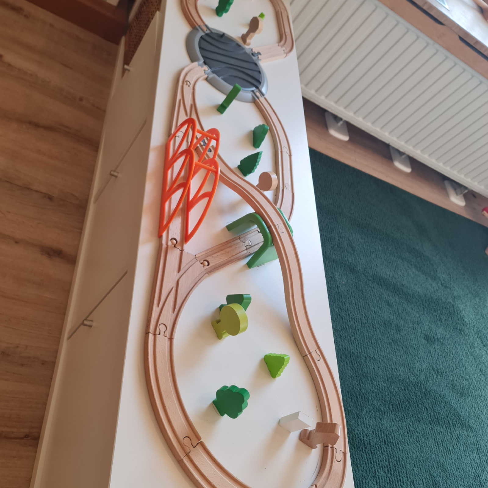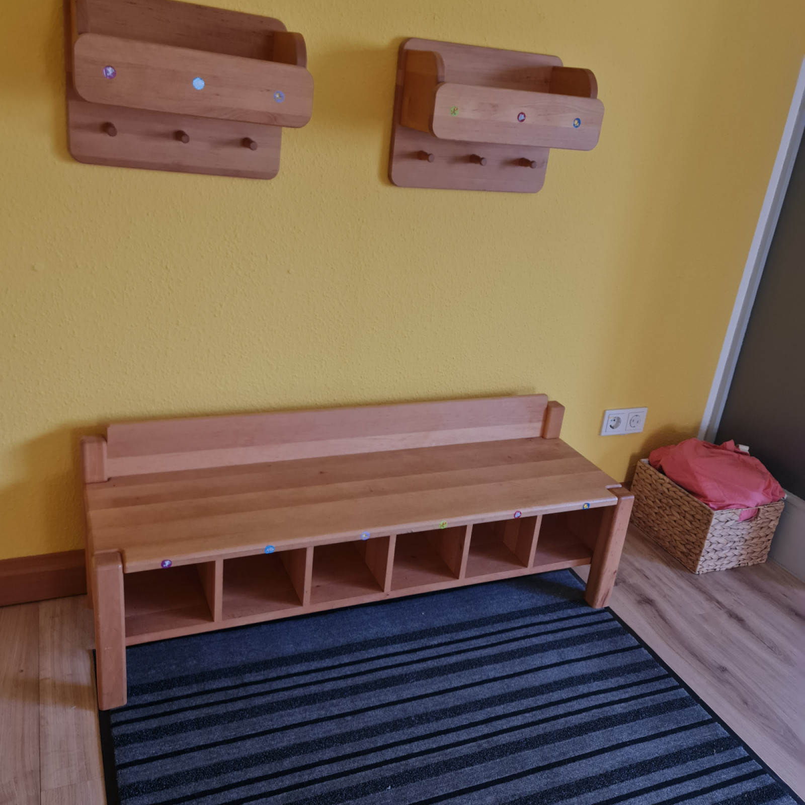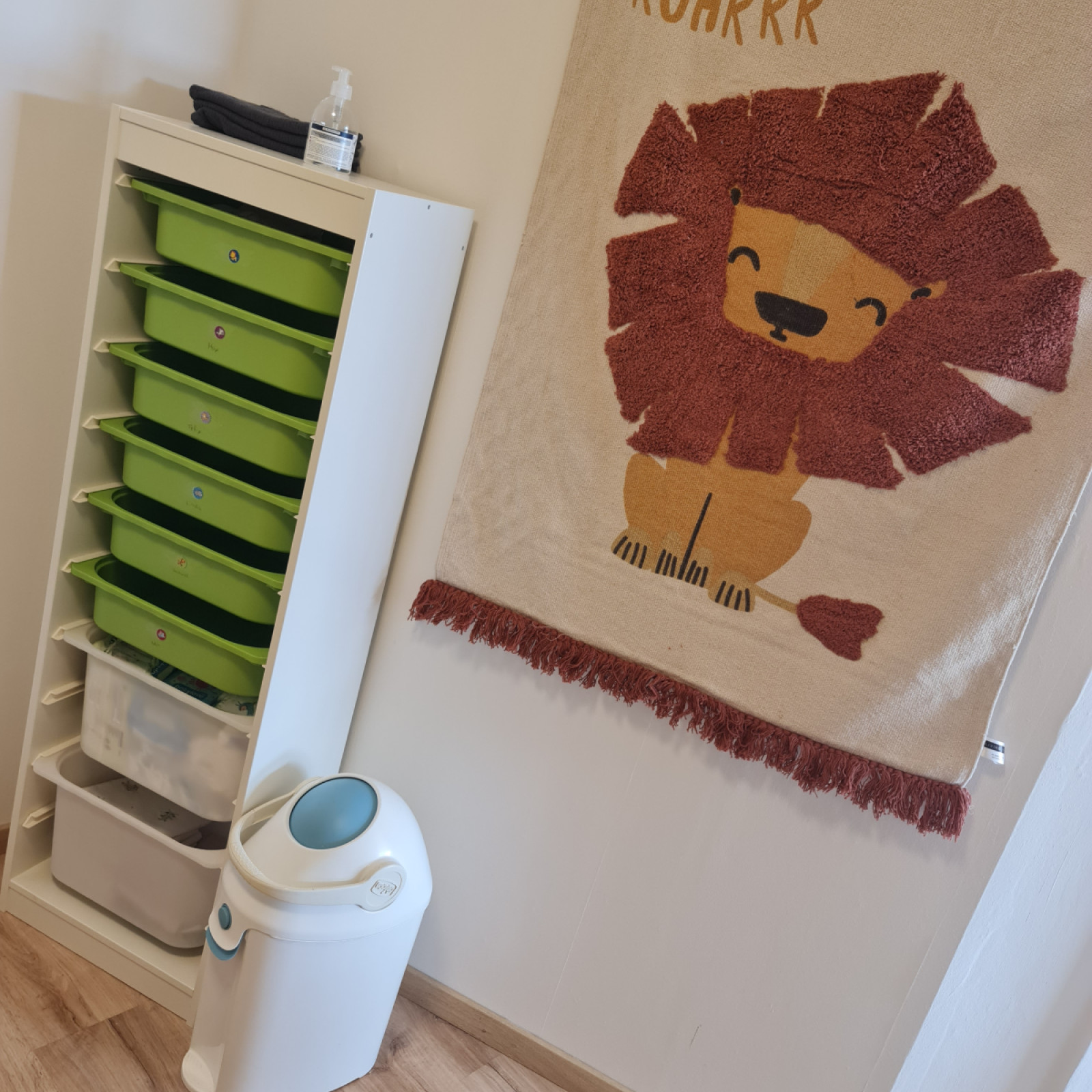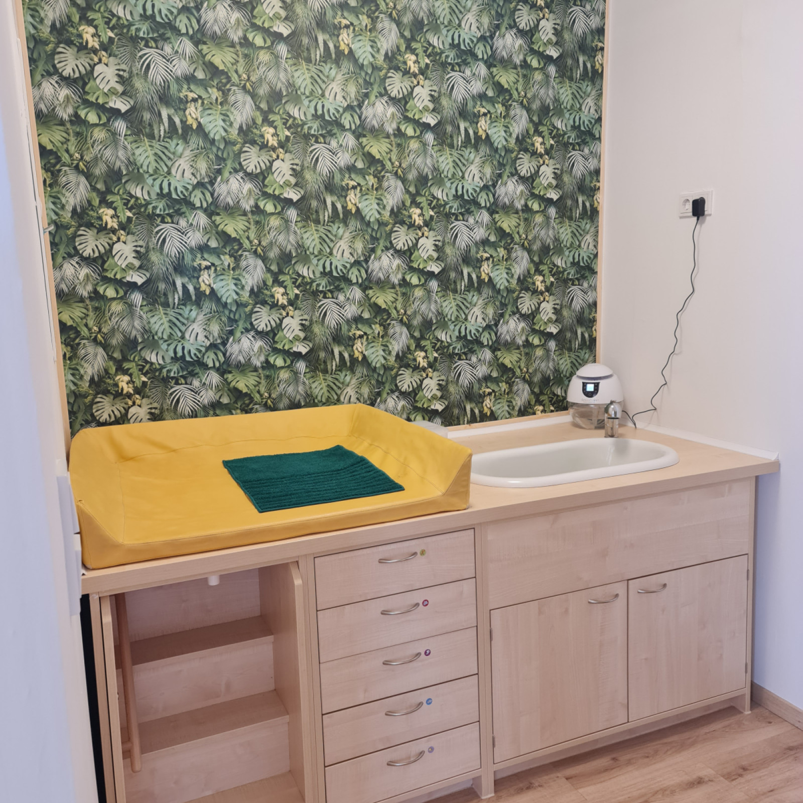 Im Wickelraum befindet sich ein Kindergartenwickeltisch inkl. ausziehbarer Treppe.